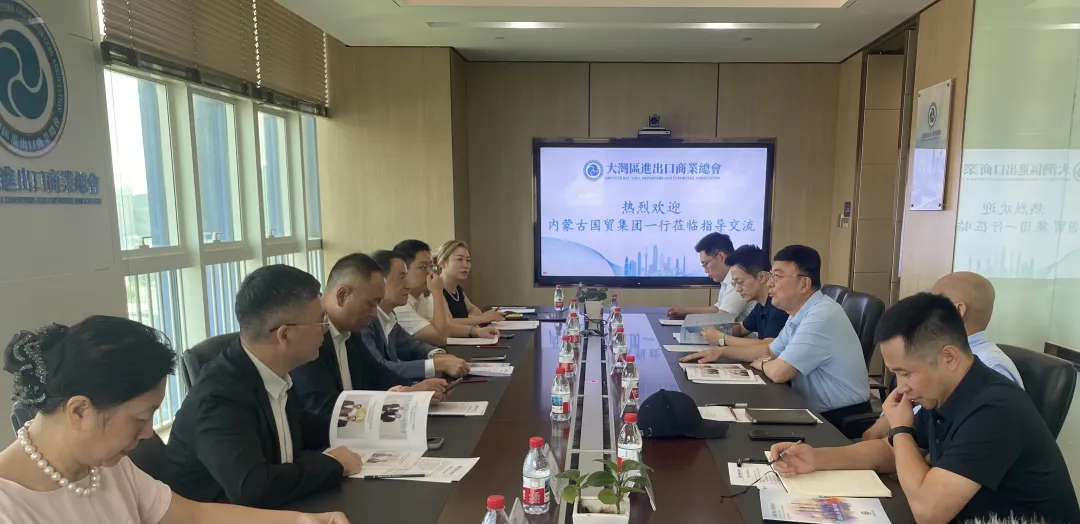 王健董事长介绍了内蒙古国贸集团作为支撑内蒙古自治区对外开放和对外贸易服务的核心定位,以及未来业务发展规划。期待能够依托商会平台,链接大湾区产业资源,共同在口岸经济发展、易货贸易平台建设、“新三样”出口等方面等开展务实合作。