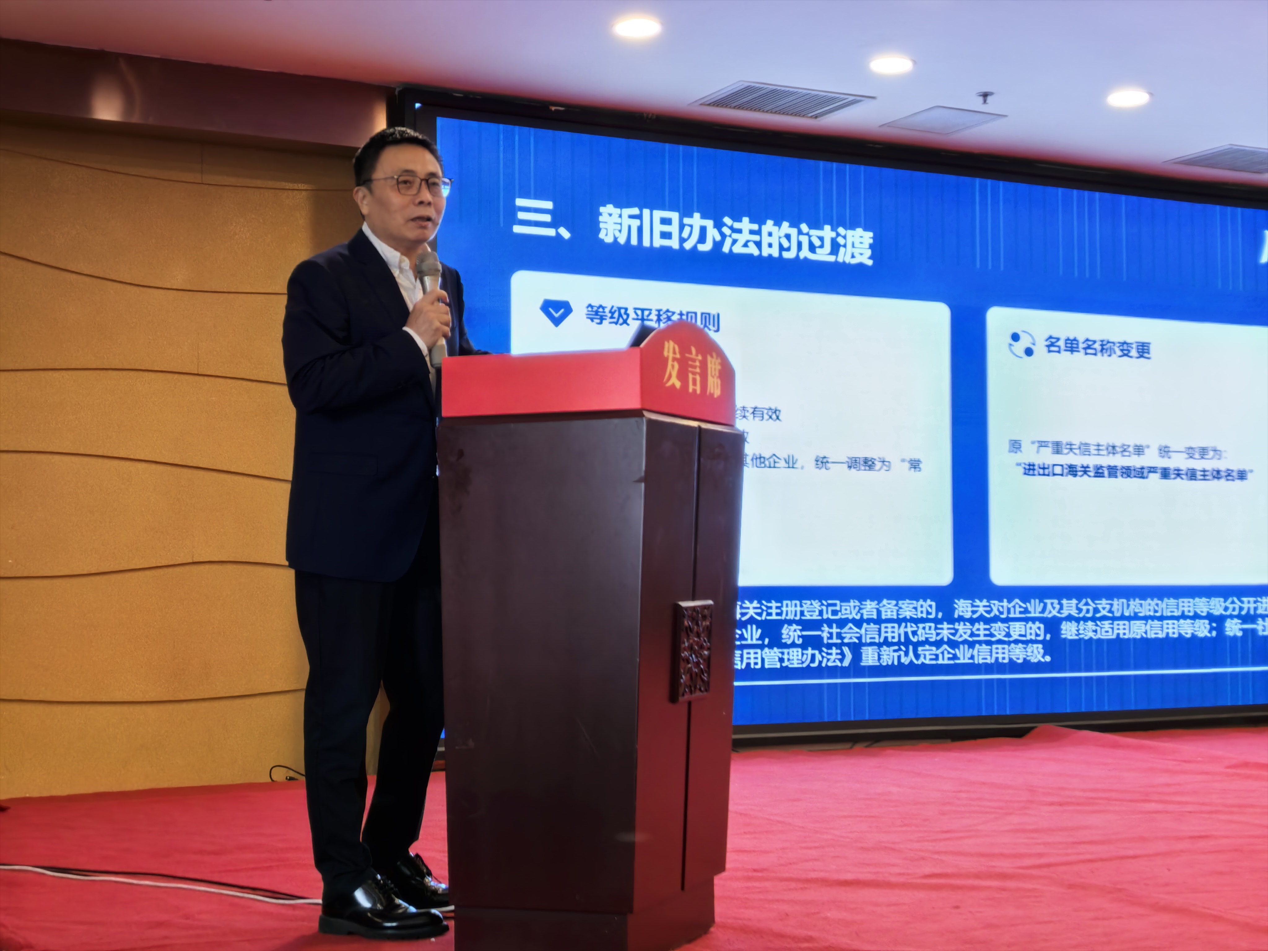 授课中,熊斌系统梳理了中国AEO制度的发展历程,明确我国AEO互认协议签署数量、覆盖国家(地区)数量稳居全球首位的行业地位;重点拆解282号令核心变革,围绕五级信用等级认定、失信/严重失信判定标准、信用信息公示与修复、复核与整改机制、新旧政策过渡规则五大关键内容,用清晰的逻辑、详实的数据为企业厘清政策边界。