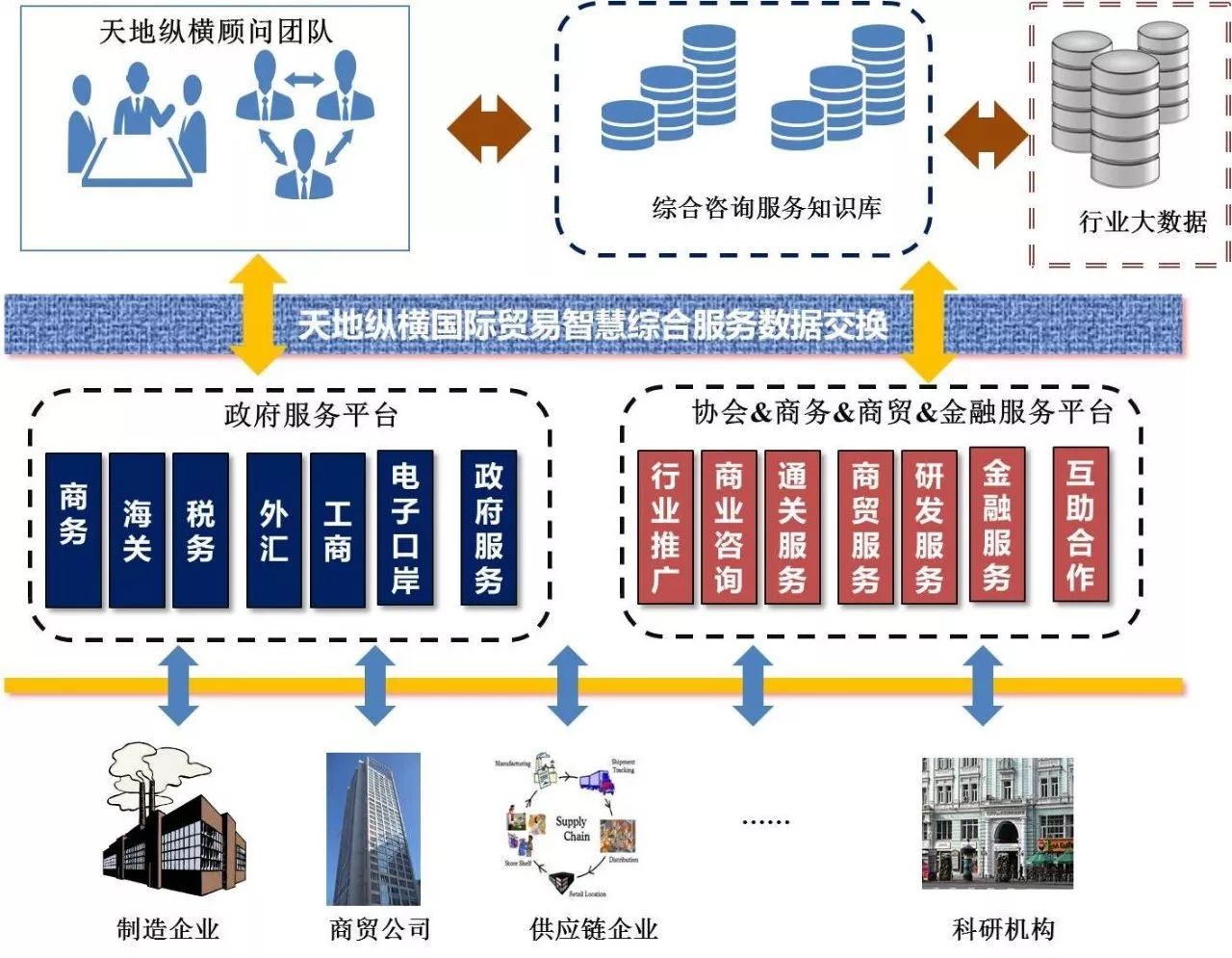 天地纵横建立咨询服务知识库和行业数据库,为各类政府机构、行业协会、商会、商贸服务、金融机构提供全方位的支撑和协作服务方案。