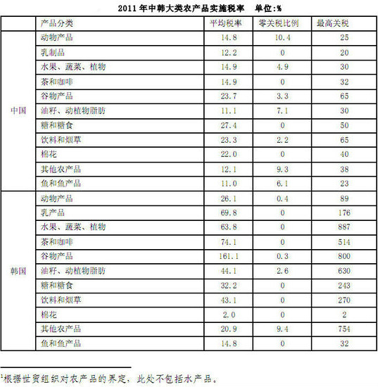 韩国农业贸易保护:自贸协定中多种农产品规定不予撤销关税