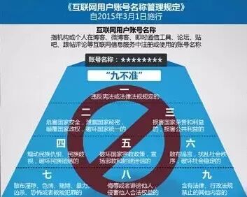 3月1号起,《互联网用户账号名称管理规定》将正式施行,微博、微信、QQ、论坛等社交网络的账号名称都将受到9项限制,包括如不得危害国家安全、颠覆国家政权、破坏国家统一等。