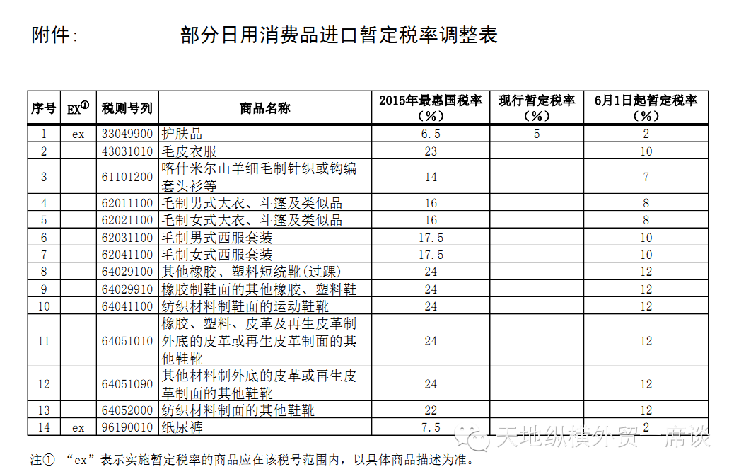【财政政策】国务院关税税则委员会关于调整部分日用消费品进口关税的通知