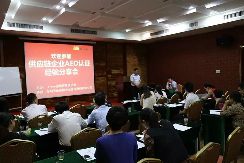 2015年6月30日,由深圳市天地纵横企业管理顾问有限公司,iTrade国际贸易俱乐部协办的“供应链企业AEO认证经验分享会”,于深圳老地方酒店成功举办。