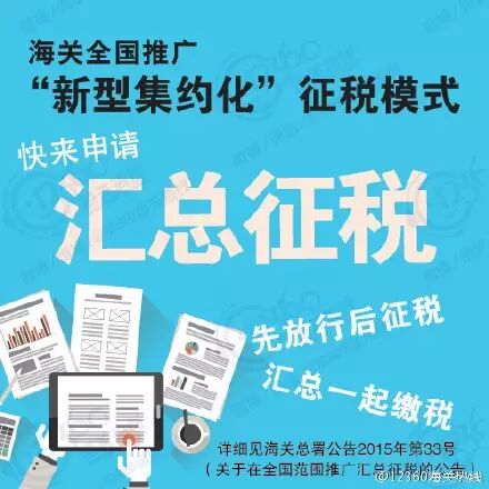 2015年7月24日,海关总署发布2015年第33号公告《关于在全国范围推广汇总征税》(详见点击链接)。